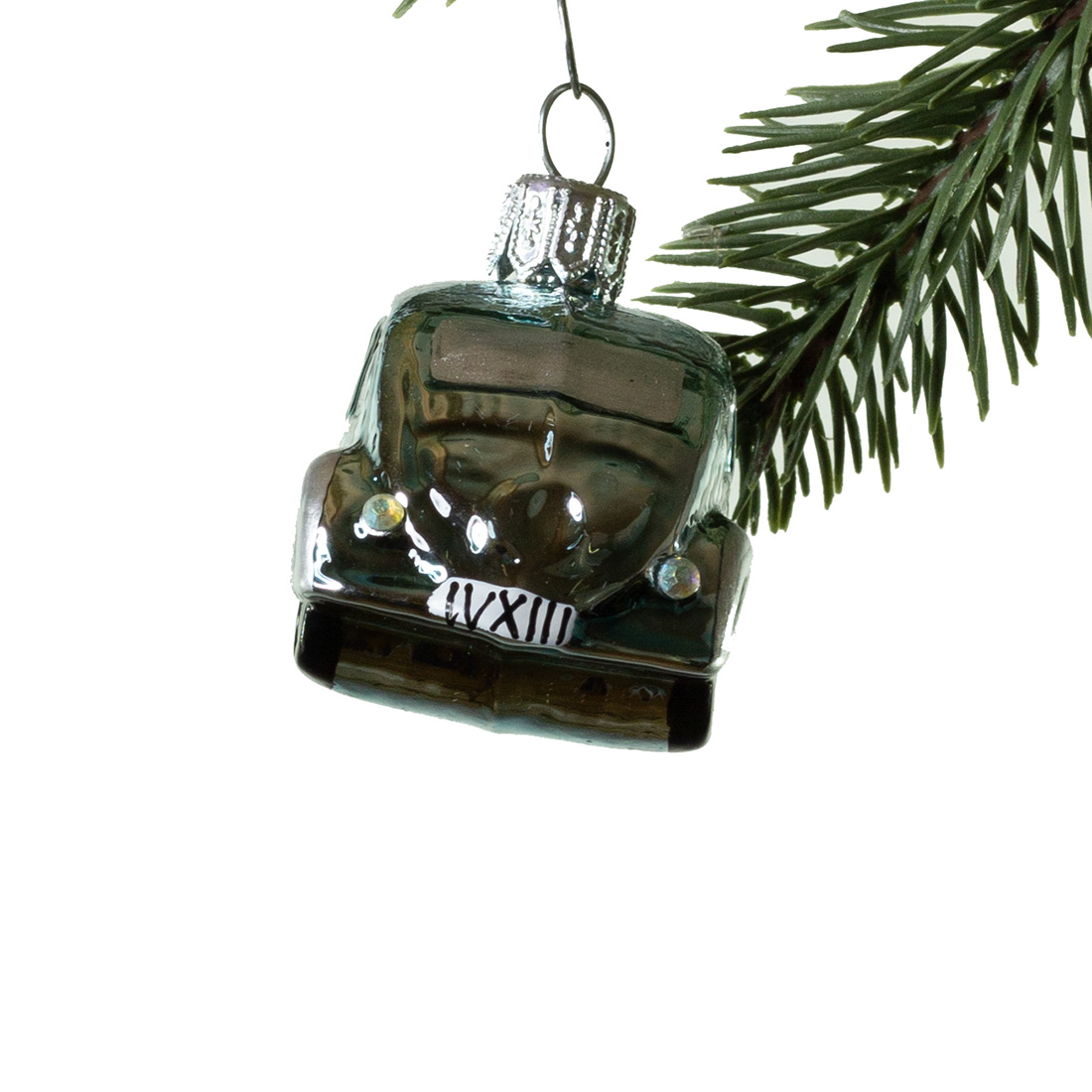 Bilen er mundblæst ind i en gammel jernform. Kuglerne bliver dekoreret i hånden i gammeldags stil. Nu er den klar til at dekorere alverdens smukke træer!