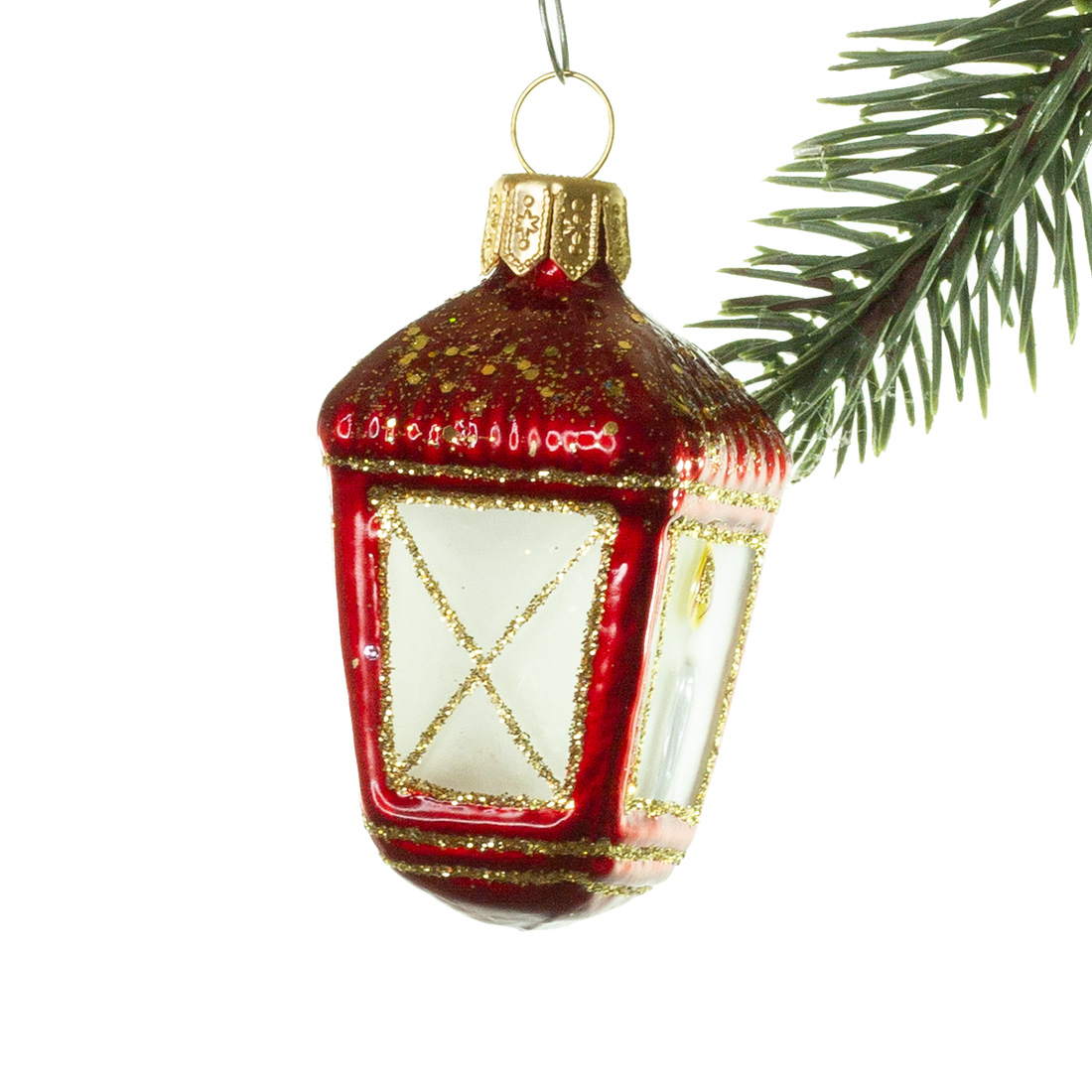 Lygten er mundblæst ind i en gammel jernform. Kuglerne bliver dekoreret i hånden i gammeldags stil. Nu er den klar til at dekorere alverdens smukke træer!