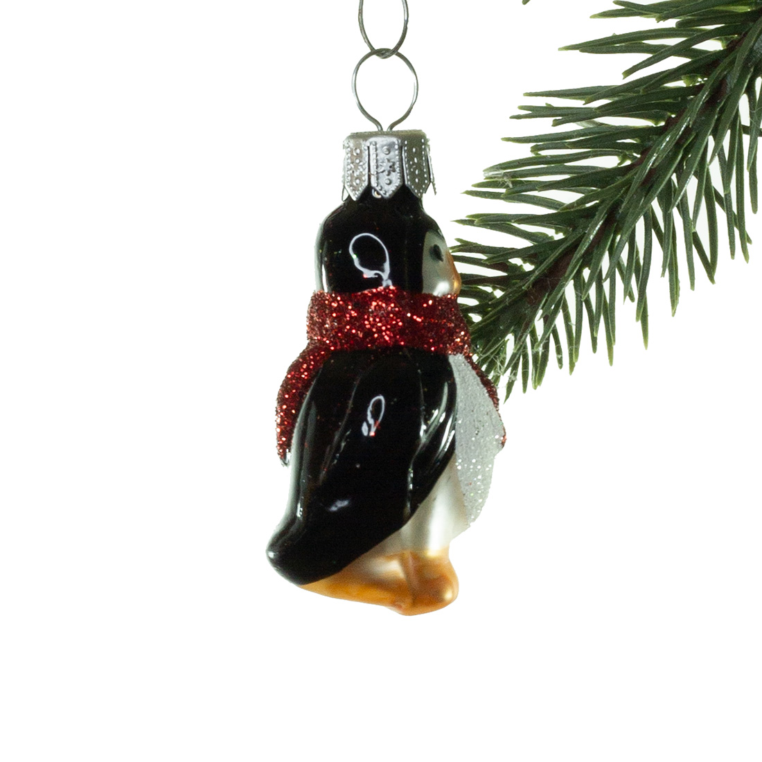 Den sødeste lille mundblæste pingvin med rødt glimmer tørklæde. På gennemrejse fra Nordpolen. Håndlavet på et glaspusteri i Polen. Lavet efter gamle traditioner.