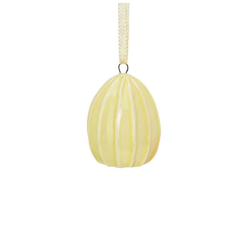 Påskepynt- Porcelæns æg- Stribet- Pastel gul