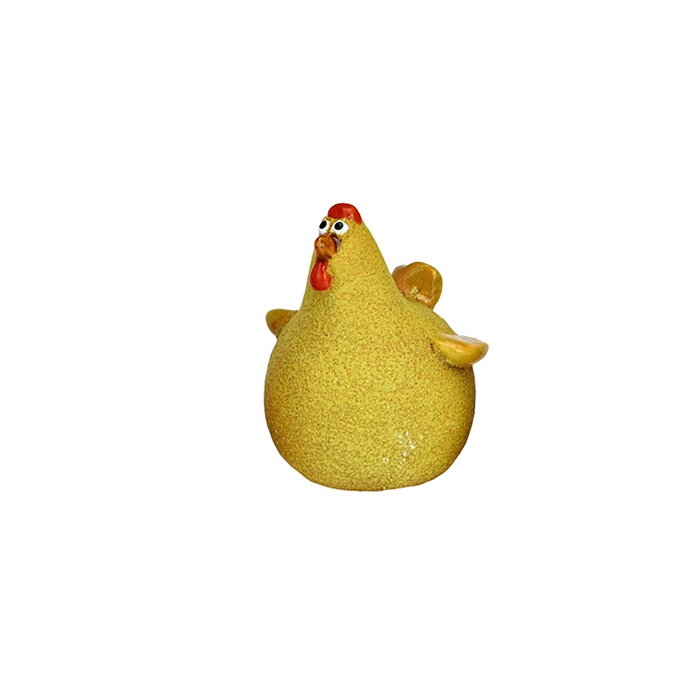 Sjov og enkel lille høne, lavet i stentøjsler, med blankglaseret hoved, hals, vinger og hale ellers mat krop. Sjov med sine udstående øjne.