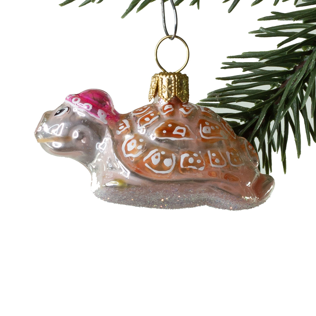Skildpadden er mundblæst ind i en gammel jernform. Glaskuglerne bliver dekoreret i hånden i gammeldags retrostil. Den er dekoreret med en masse glimmer. Nu er den klar til at dekorere alverdens smukke træer!
