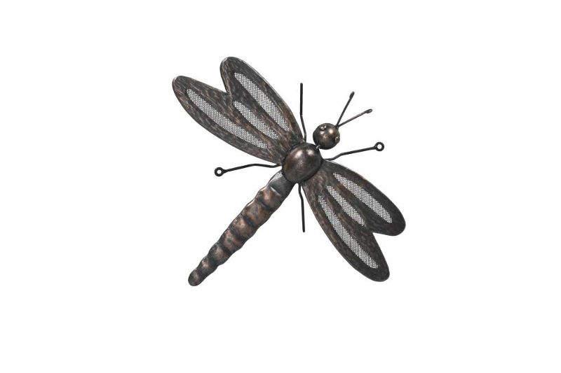 Virkelig flot guldsmed i kobberagtige farver. Den er lavet i metal og lakeret, så den ligner kobber. Vingerne er lavet med net, så væg/ rækværk kan skinne igennem. Flot på væggen og/eller rækværket. Flot med dekorationer, som skaber lidt dynamik i haven eller huset.